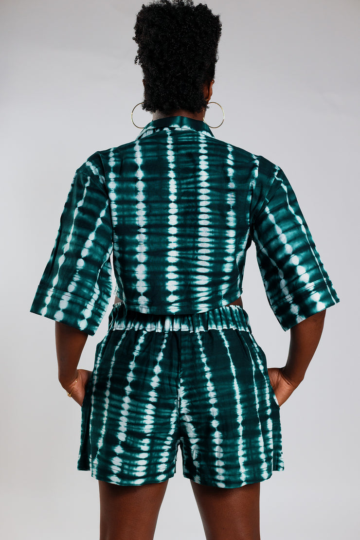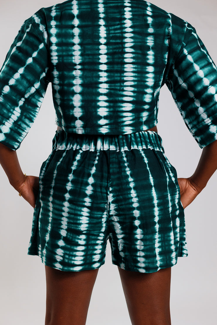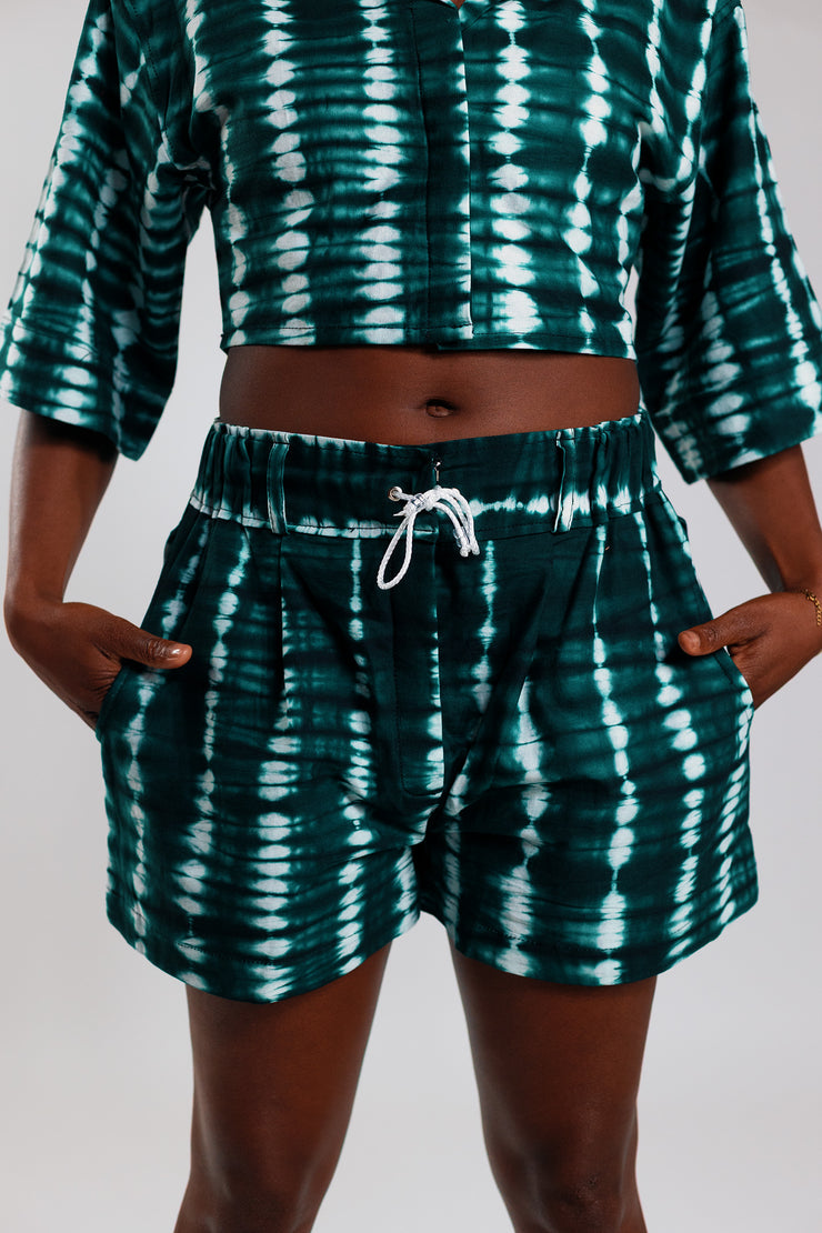 Bold cut. Natural color. Built to move. The Hotpants in Deep Green are a confident, minimal silhouette handcrafted in Ghana from 100% hand-dyed cotton. Made to sit high on the waist with a clean, tailored finish, they’re breathable, lightweight, and perfect for styling up or down. Whether worn under layers or solo, these shorts offer rhythm in every step.