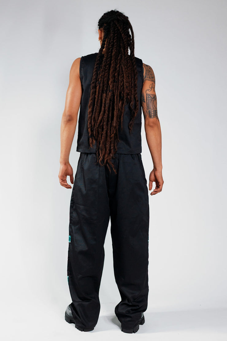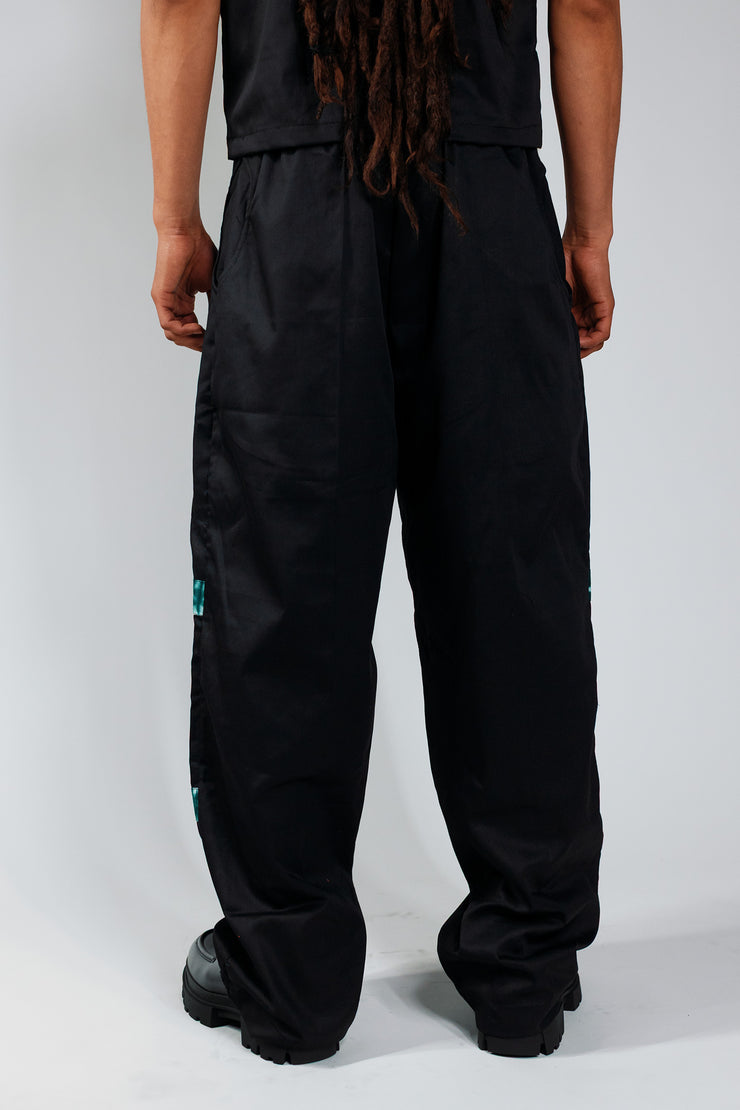 Utility meets rhythm. The Loose Fit Cargo Trousers in Cargo Black and Deep Green are built for freedom of movement, with a relaxed fit and dual-textured design. Crafted in Ghana, this piece combines durable 100% cotton cargo fabric with a bold hand-dyed Deep Green cotton panel, offering contrast, comfort, and purpose in every stitch.